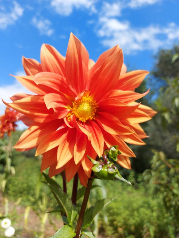 La dahlia es una planta bulbosa con llamativas flores que aparecen desde mediados de primavera hasta las primeras heladas. Se cultiva al exterior, preferentemente a pleno sol, y puede ubicarse en la tierra o en macetas. El origen de su nombre se encuentra en apellido del botánico sueco Anders Dahl, aunque es originaria de México, donde los aztecas ya la utlizaban como decoración en las fiestas.