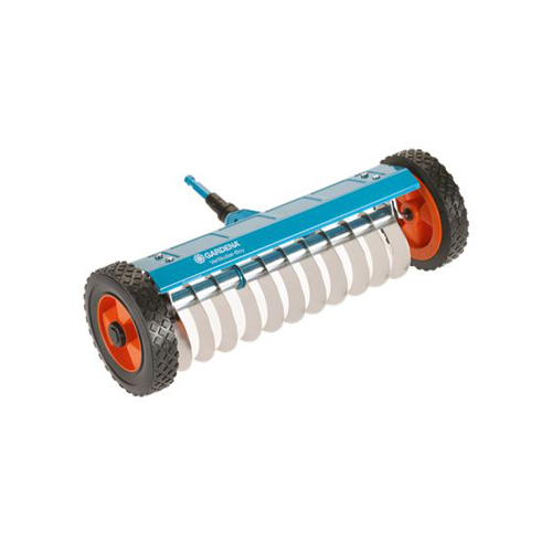 Con el escarificador con ruedas combisystem GARDENA puede eliminar el musgo, la paja y las malas hierbas del césped. Mejora la absorción de aire, agua y nutrientes del césped. Las cuchillas especiales con partes posteriores deslizantes de acero inoxidable de alto grado penetran varios milímetros y eliminan las hierbas y el césped muerto de la tierra. La anchura de trabajo es de 32 cm. Las robustas ruedas, con dibujo especial y un eje de apoyo, facilitan el trabajo. El escarificador con ruedas es adecuado para todos los mangos combisystem GARDENA, por lo que GARDENA recomienda una longitud de mango de 180 cm, dependiendo de la altura del cuerpo. El periodo de garantía es de 25 años. Consejo: La escarificación es un tratamiento intensivo del césped que se recomienda realizar en primavera y otoño.