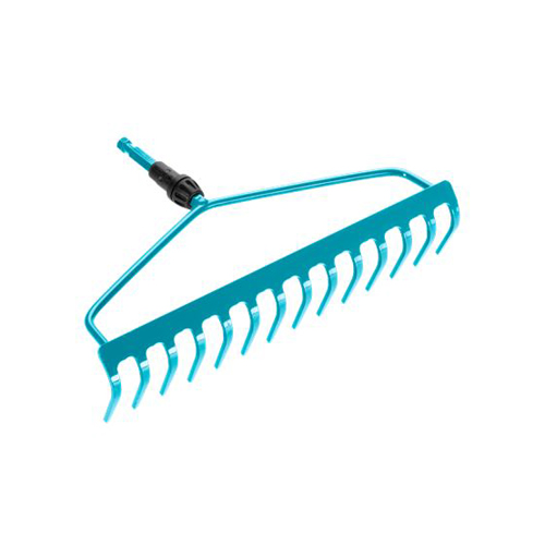El rastrillo con puente combisystem GARDENA es un práctico rastrillo multifunción y es perfecto para rastrillar, nivelar y trabajar la tierra. Gracias al soporte en D y a la anchura de trabajo de 36 cm con 14 púas, el trabajo duro que requiere una guía segura no es un problema. El rastrillo con puente es adecuado para todos los mangos combisystem GARDENA, por lo que GARDENA recomienda una longitud de mango de 150 cm, dependiendo de la altura del cuerpo. El periodo de garantía es de 25 años.