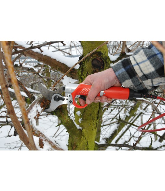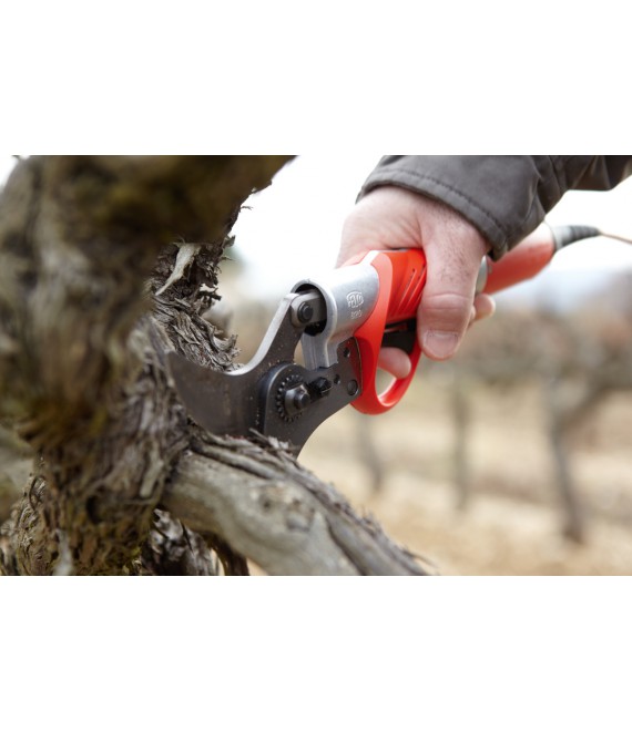 Controlada y alimentada por su Powerpack FELCO 880 que comprende una batería y un cargador, el conjunto FELCO 820 es el resultado de una ergonomía muy estudiada que alivia los músculos del brazo y de la espalda durante la jornada de poda.