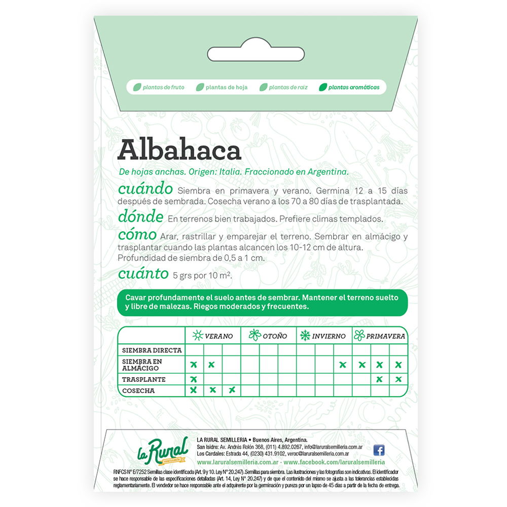 Cómo sembrar: Arar, rastrillar y emparejar el terreno. Sembrar en almácigo y trasplantar cuando las plantas alcancen los 10-12cm de altura. Profundidad de siembra: 0,5 a 1 cm.
