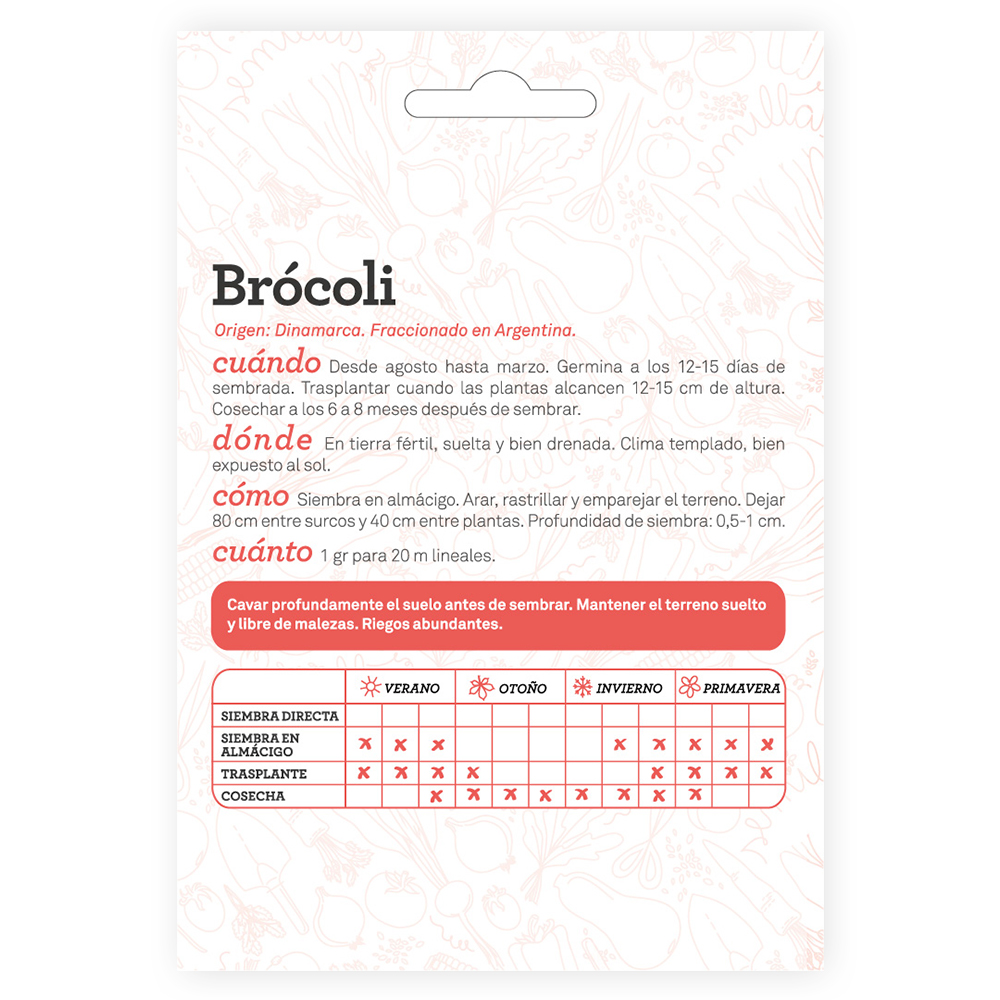 Cuánto sembrar: 1 gr para 20m lineales.