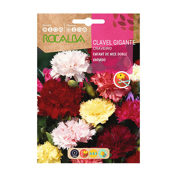 Planta perenne de tallos robustos y hojas lineales con abundante floración de flor doble, de pétalos redondeados.